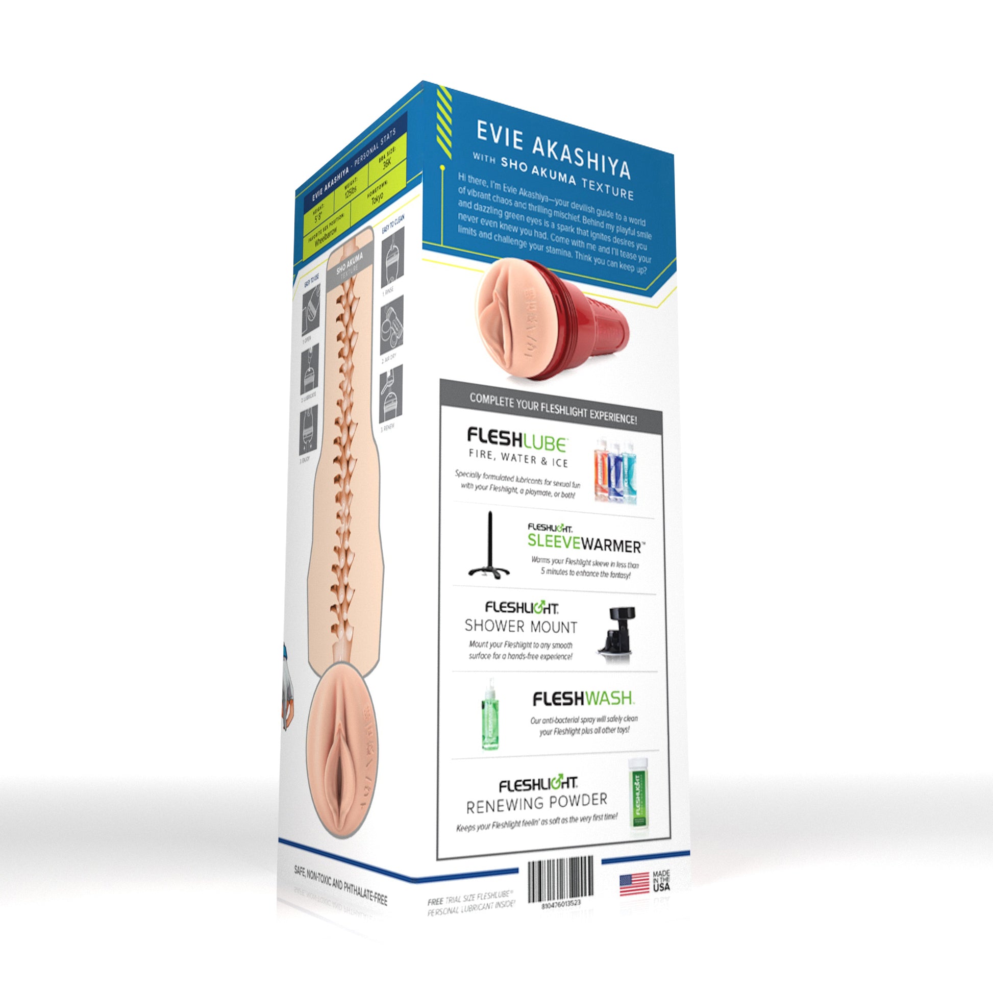 Fleshlight introduces our latest Fleshlight Fantasy Girl featuring the Sho Akuma texture of Evie Akashiya. Evie Akashiya is a striking and unforgettable presence with a charm as bold as her appearance. Evie knows how to turn heads. Her fiery red hair perfectly frames her mischievous green eyes, which sparkle with playful curiosity.